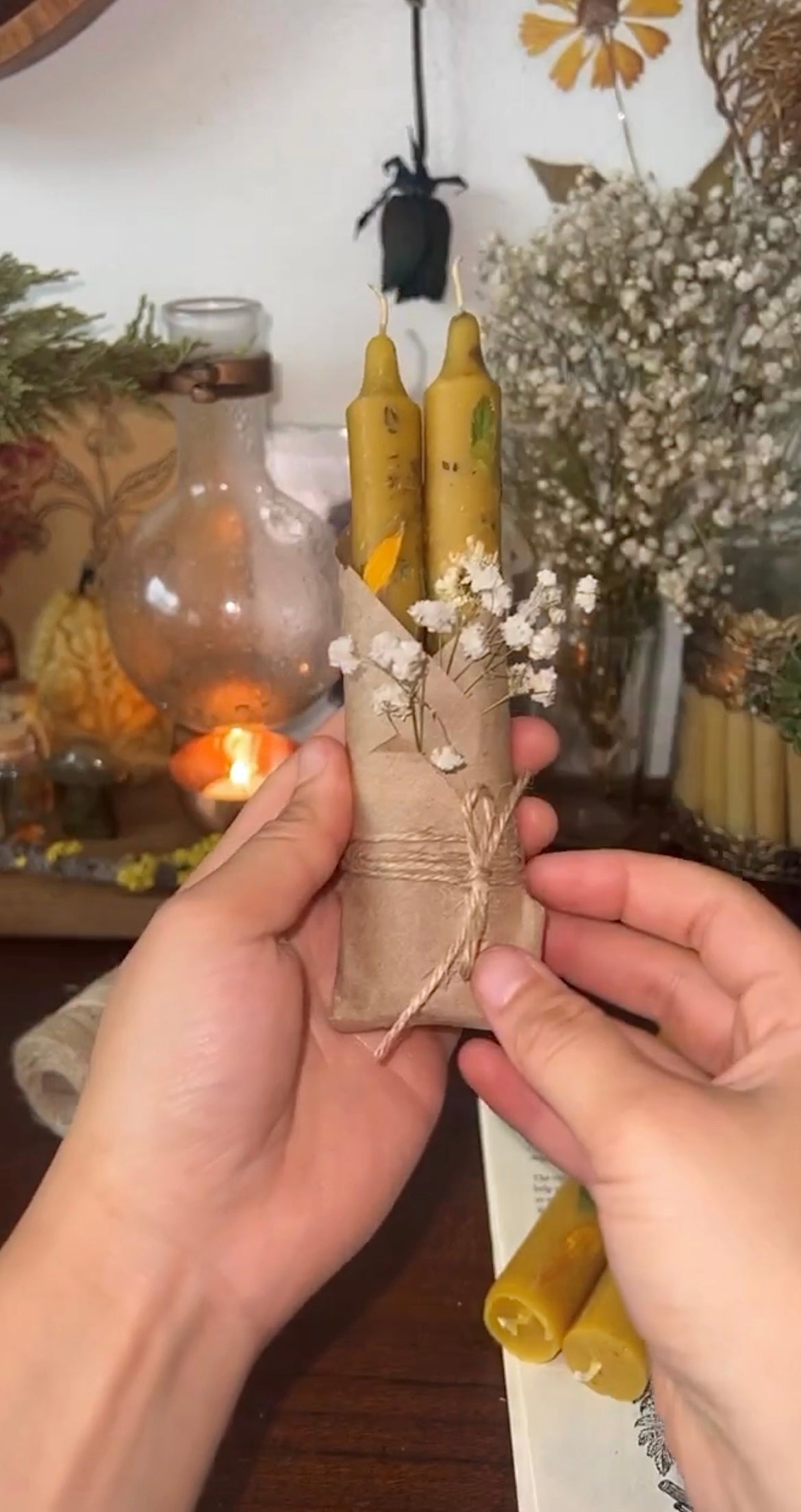 These are custom spell candles without any drips, wax charms, or a custom label. These are how your candles will be wrapped unless you decide to get a personalized kraft label.