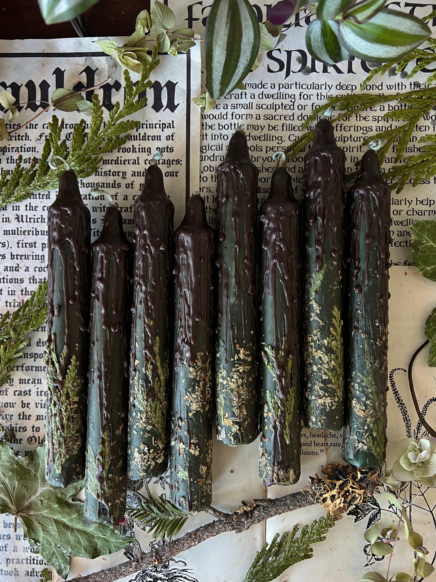 𝐈𝐌𝐏𝐎𝐑𝐓𝐀𝐍𝐓: These candles are best used for decoration on your altar or best burned OUTDOORS. Should you plan to burn them indoors, be wary of the flame. The more herbs, the BIGGER and taller the flame with be. Always supervise your candles while burning. These candles have very burnable botanicals.