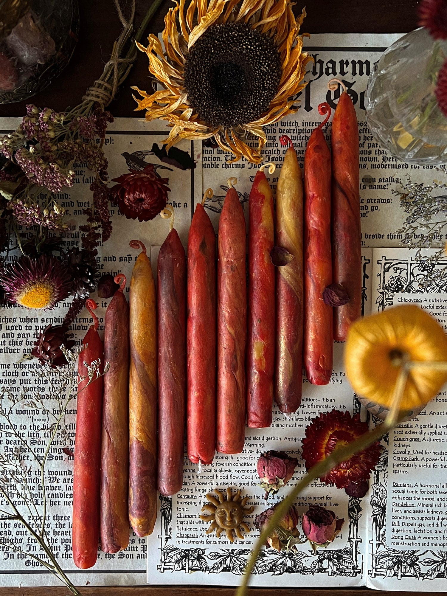 𝐈𝐌𝐏𝐎𝐑𝐓𝐀𝐍𝐓: These candles melt beautifully and are safe to burn indoors, however, PLEASE be wary of the flame. The more herbs, the bigger and taller the flame will be. Always supervise your candles while burning. These candles have very burnable botanicals. Some herbs may crackle when caught on fire, such as cedar and juniper.