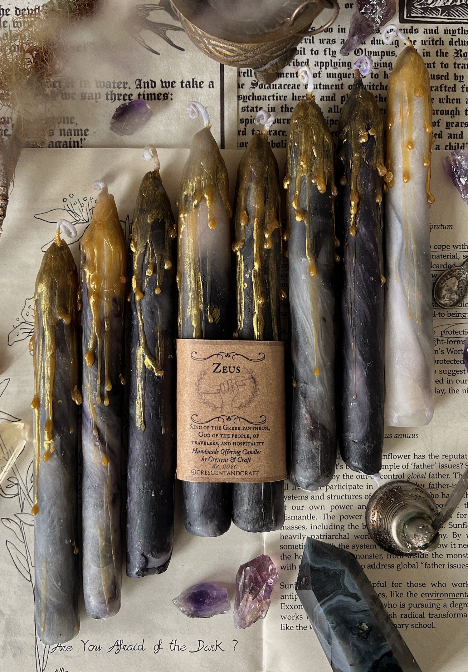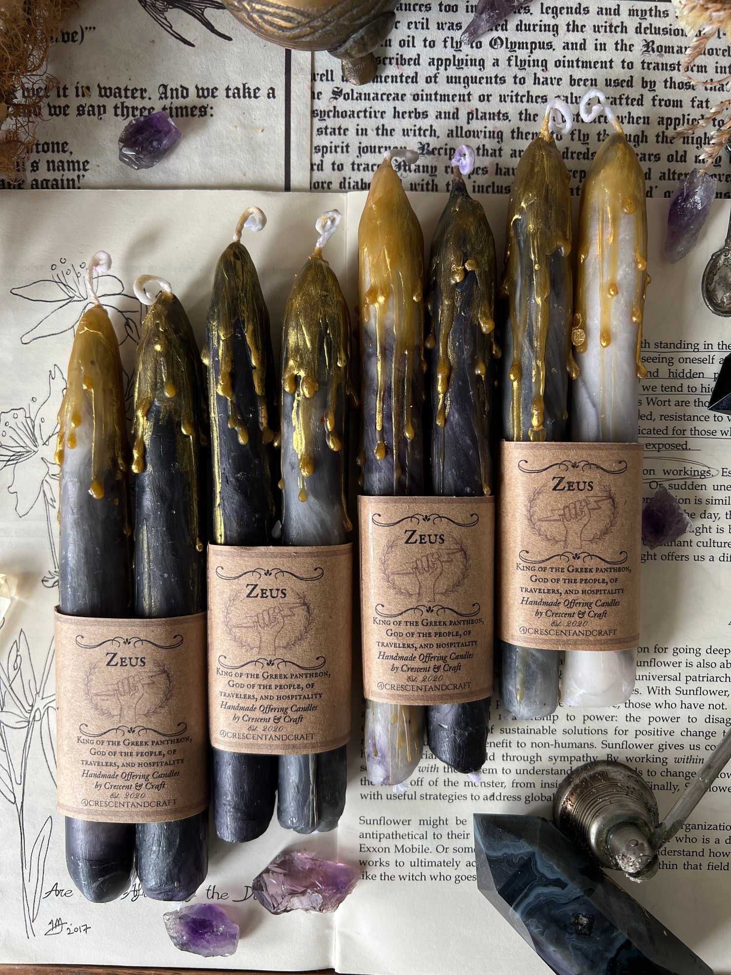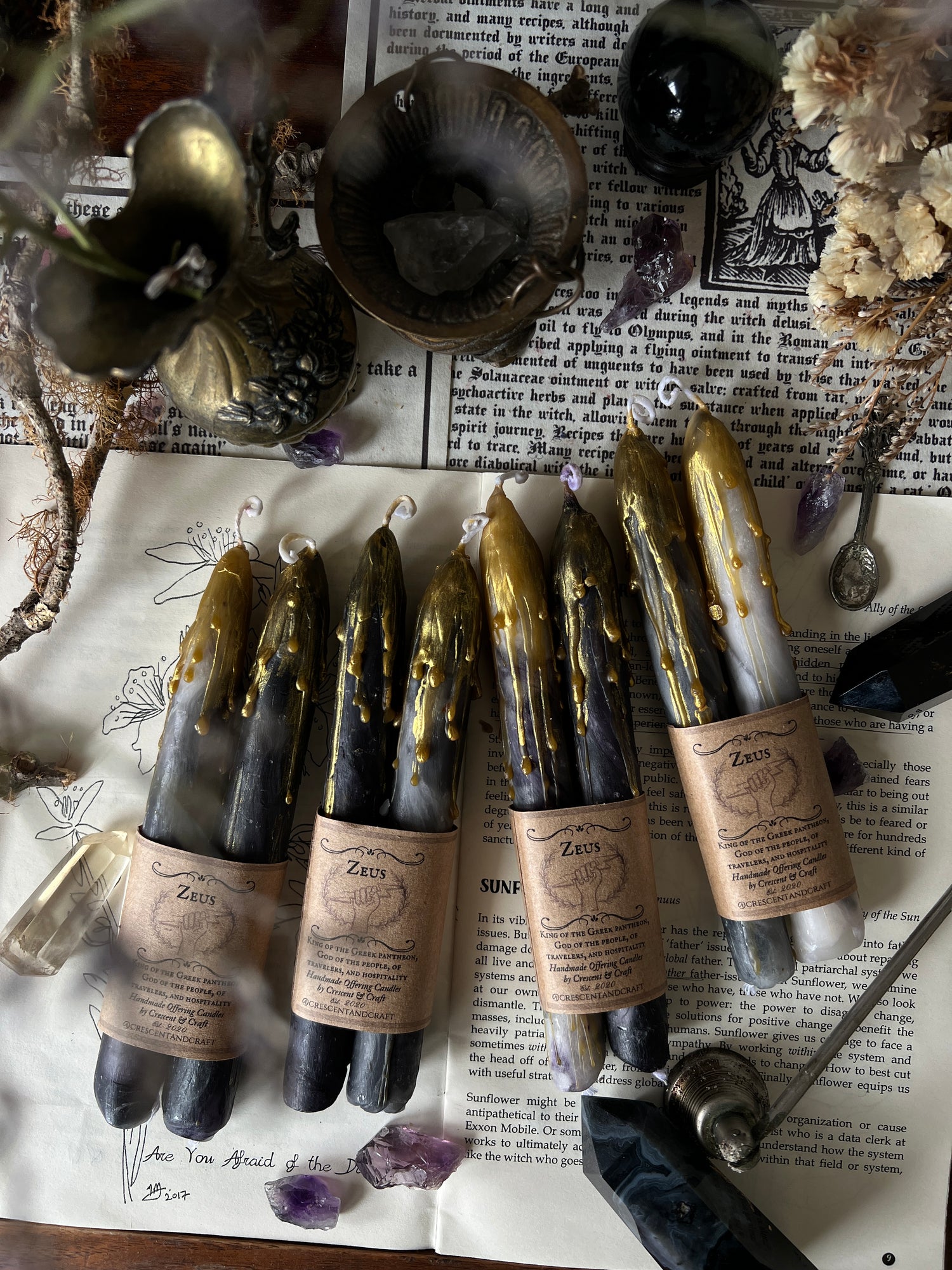 Hand rolled marbled candles to Zeus, King of the Greek Olympian gods and goddesses.